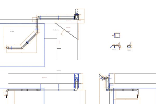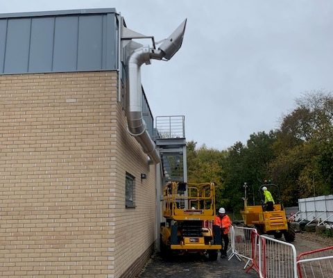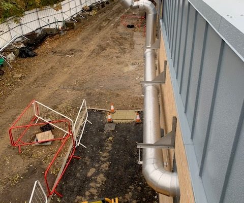 Our in-house engineering team began by reviewing the initial design and carrying out detailed pressure drop calculations and layout adjustments to suit the building’s specific layout, including a raised plant deck and several nearby windows and fire exits. All calculations and drawings were prepared and submitted for approval prior to fabrication, ensuring full compliance and manufacturer sign-off.