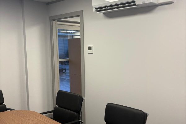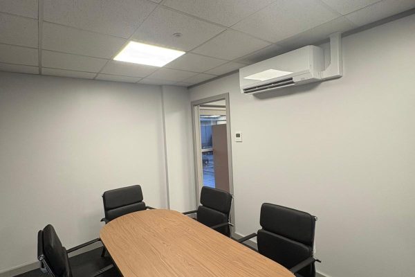 As part of an internal refurbishment, a two-storey head office created three new offices within an existing open-plan space — a meeting room and two side offices. These new rooms required air conditioning so they would be fully usable once the fit-out was complete.